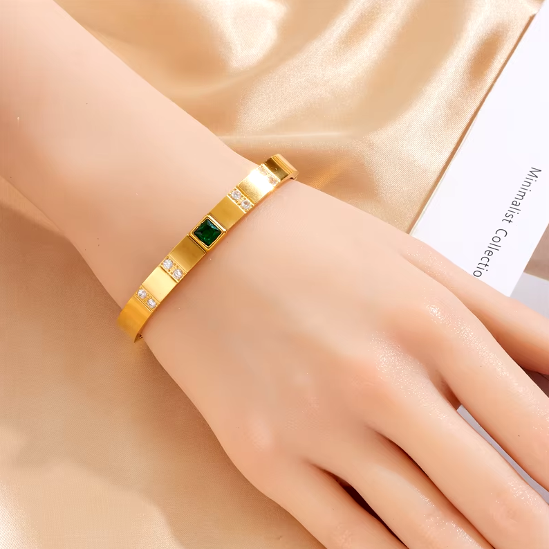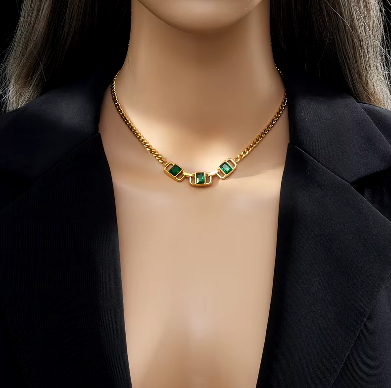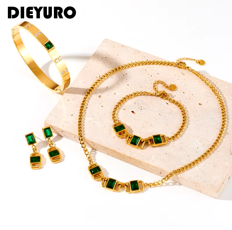 DIEYURO 316L нержавеющая сталь геометрический зеленый кристалл ожерелье браслет серьги для женщин (полный комплект)