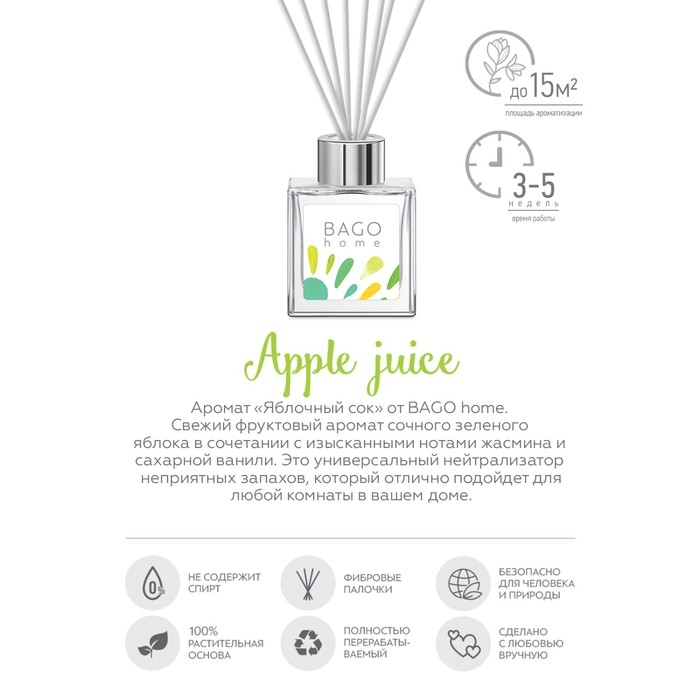 Диффузор ароматический яблочный сок BAGO home 45 мл
