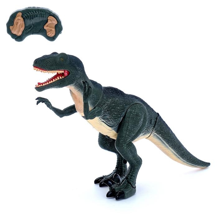 Динозавр радиоуправляемый T-Rex, световые и звуковые эффекты, работает от батареек, цвет зелёный