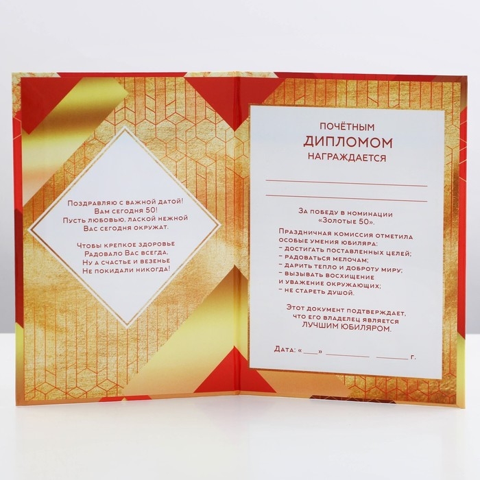 Диплом «С Юбилеем 50», А6, 16 х 11,3 см.
