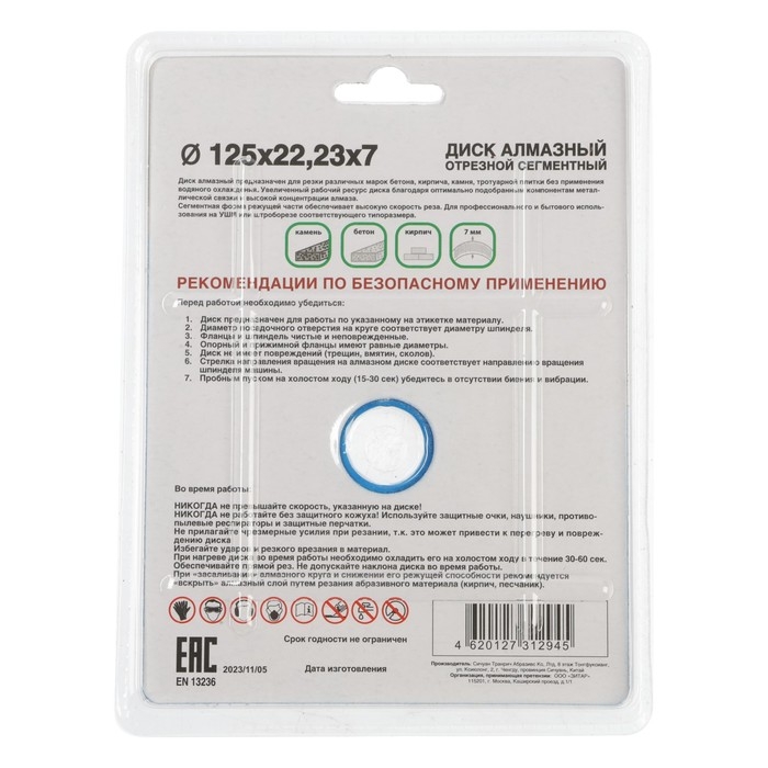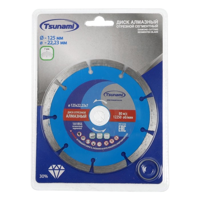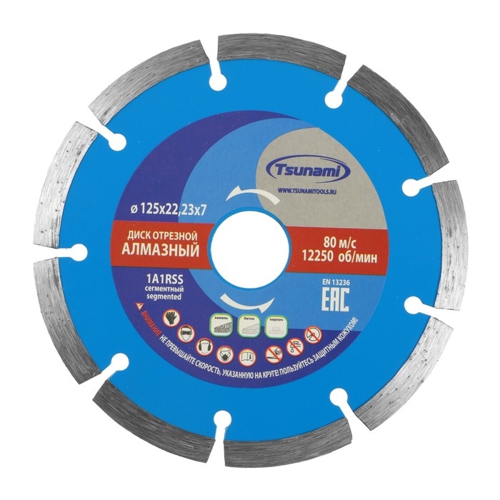 Диск алмазный отрезной TSUNAMI, сегментный, сухой рез, 125х22х7 мм, по бетону