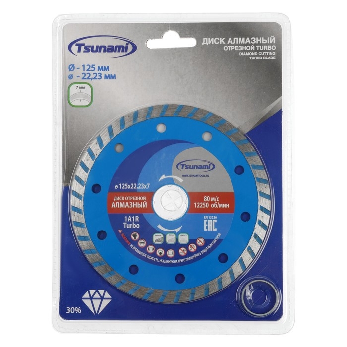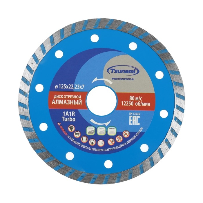 Диск алмазный отрезной TSUNAMI, Turbo, сухой рез, 125х22х7 мм, по бетону