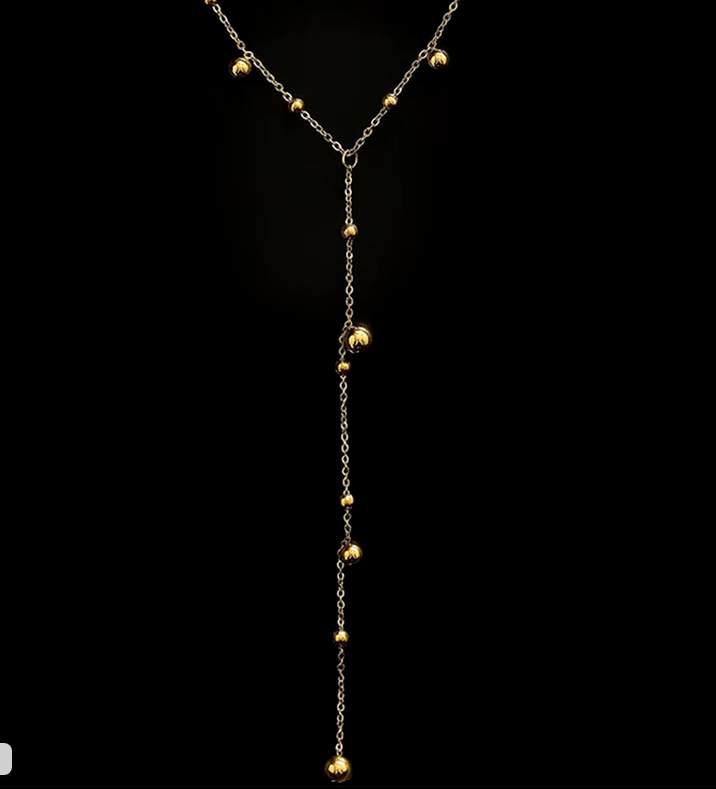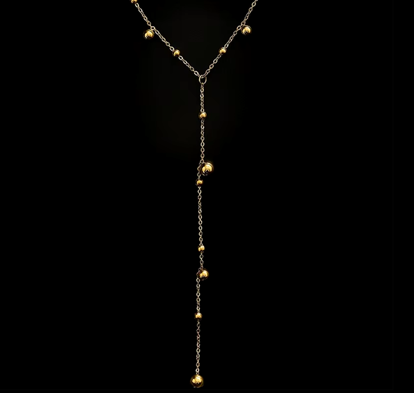 Длинное ожерелье DIEYURO из нержавеющей стали 316L с шариками золотого цвета