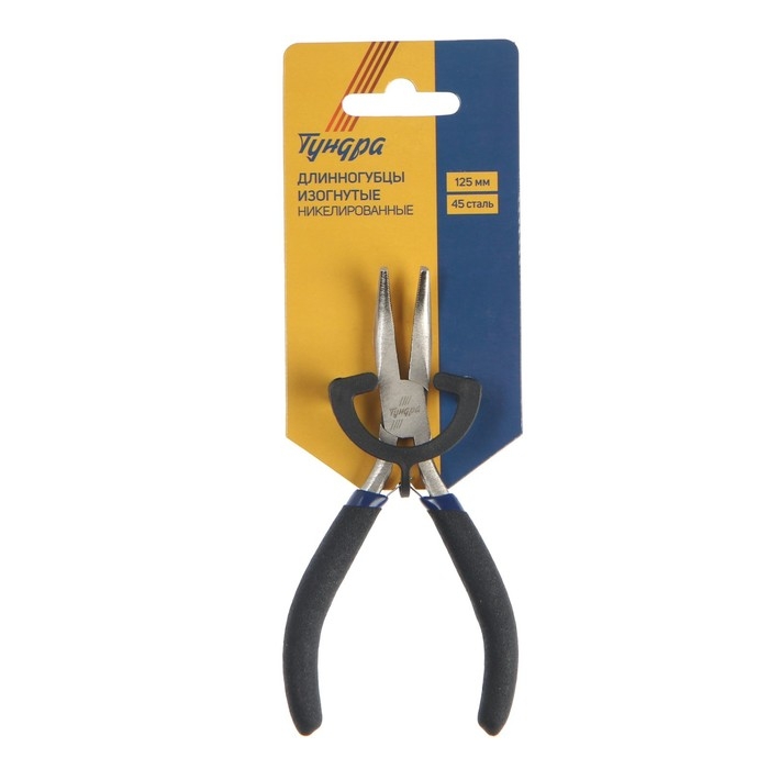 Длинногубцы изогнутые ТУНДРА mini, никелированные, обрезиненные рукоятки, 125 мм