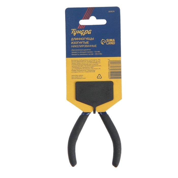 Длинногубцы изогнутые ТУНДРА, CrV, никелированные, двухкомпонентные рукоятки, 160 мм