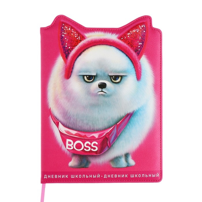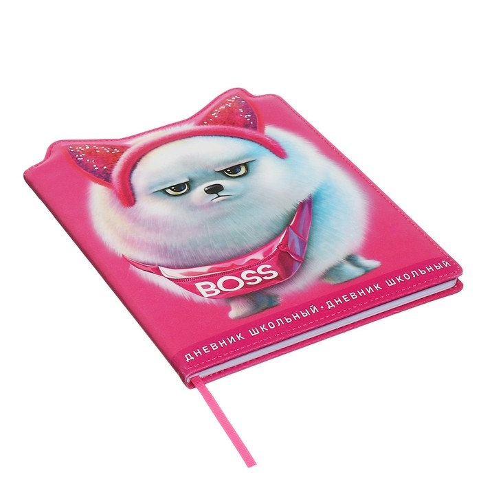 Дневник школьный для 1-11 классов, БОСС ШПИЦ, твёрдая обложка с поролоном, искусственная кожа, фигурная вырубка, ляссе, универсальная шпаргалка, 48 листов, блок 80г/м2