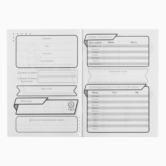 Дневник тренировок, для спортивной секции, гимнастка, 32 стр.