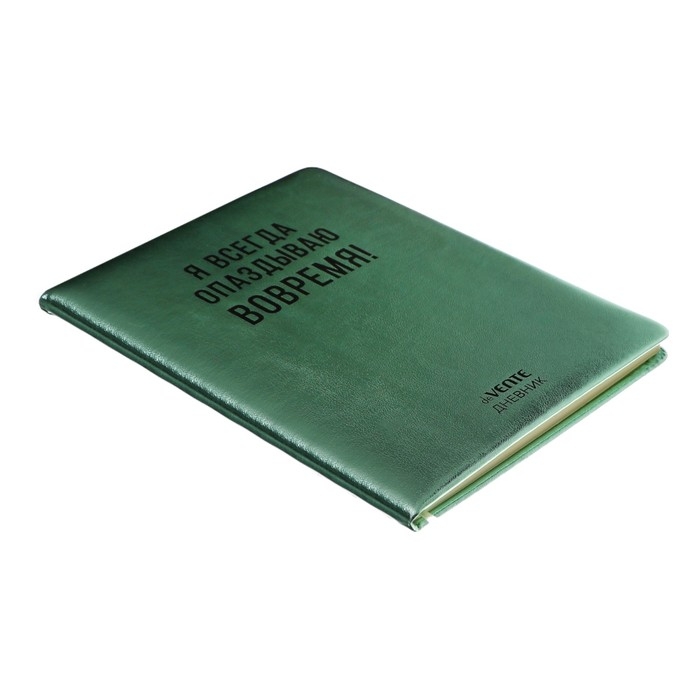 Дневник "deVENTE. Я всегда опаздываю вовремя!" универсальный блок, 48 листов, кремовая бумага 80 г/м2, печать в 1 краску, твердая обложка из искусственной кожи с поролоном, шелкография, 1 ляссе.