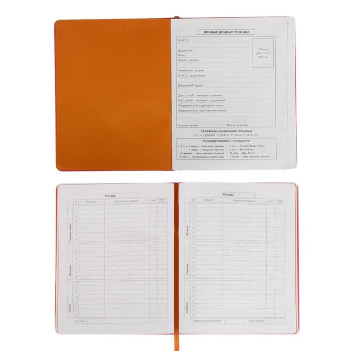 Дневник универсальный для 1-11 классов, с пеналом, твёрдая обложка из искусственной кожи, тиснение фольгой, розовый, ляссе, блок офсет 70г/м2, 48 листов