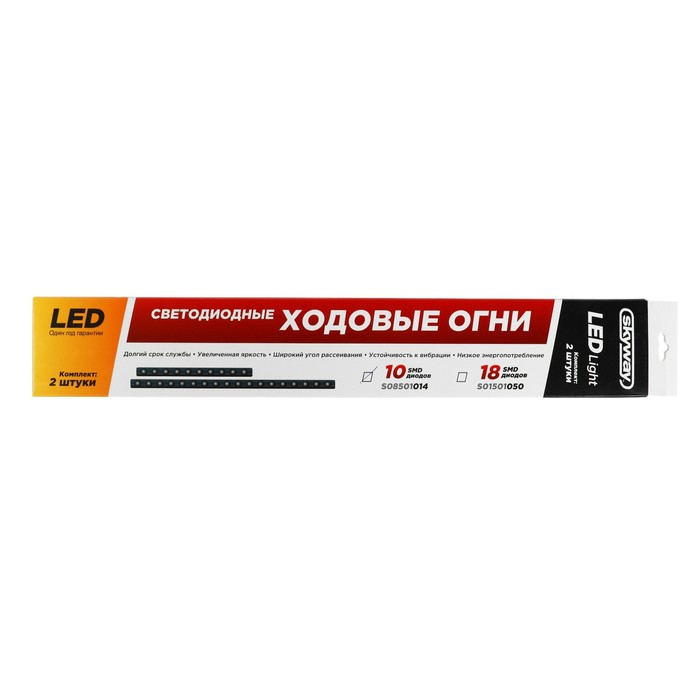 Дневные ходовые огни, Skyway 12 В, 10 диодов, 210 х 18 х 4 мм, набор 2 шт, S08501014