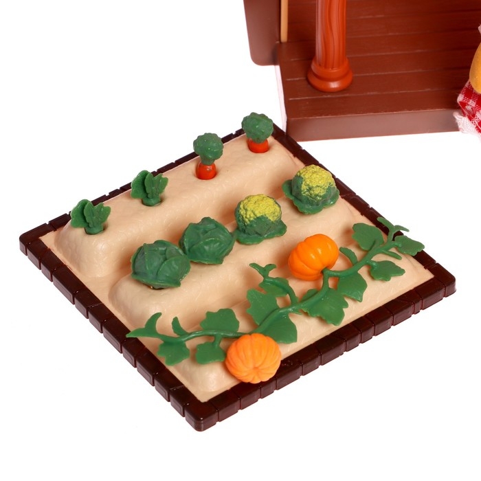 В комплекте мебель для гостиной, набор инструментов для огорода и питомец. Попросите ребёнка придумать имя зверьку.