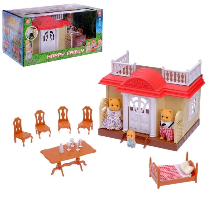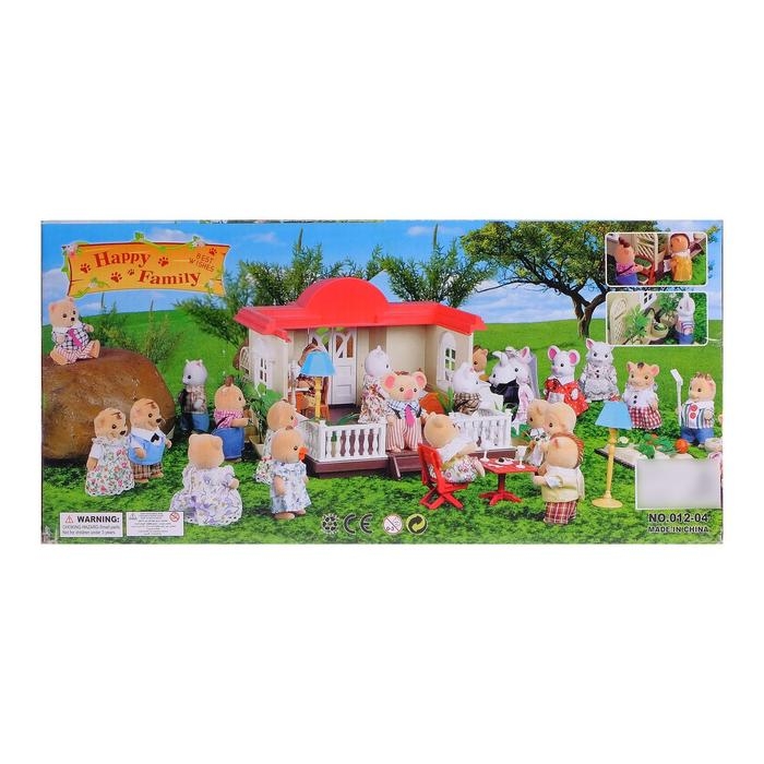 В комплекте мебель для гостиной и спальни — всё как на фото. Малыша ждёт семья крошиков: папа, мама и ребёнок. Попросите кроху придумать каждому зверьку имя.