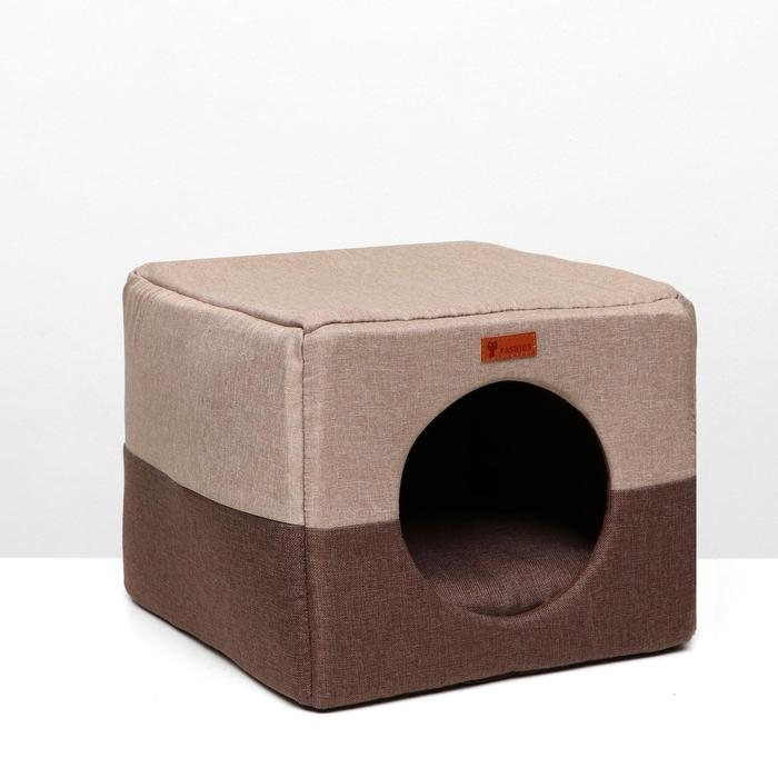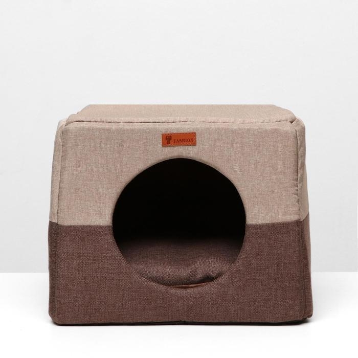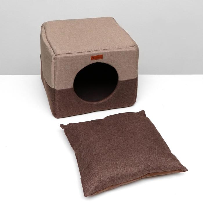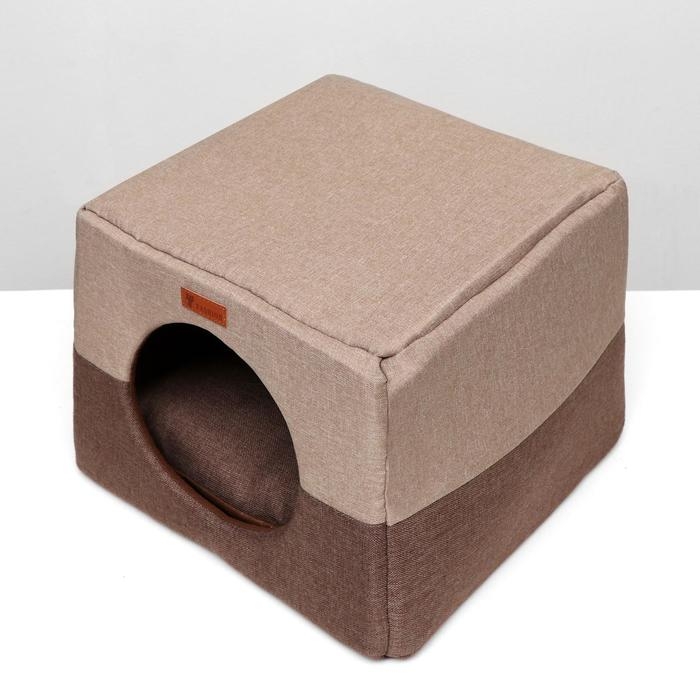 Дом – трансформер "Квадрат", рогожка, поролон, 43 х 42 х 34 см, бежево-коричневый