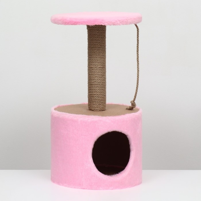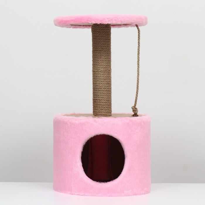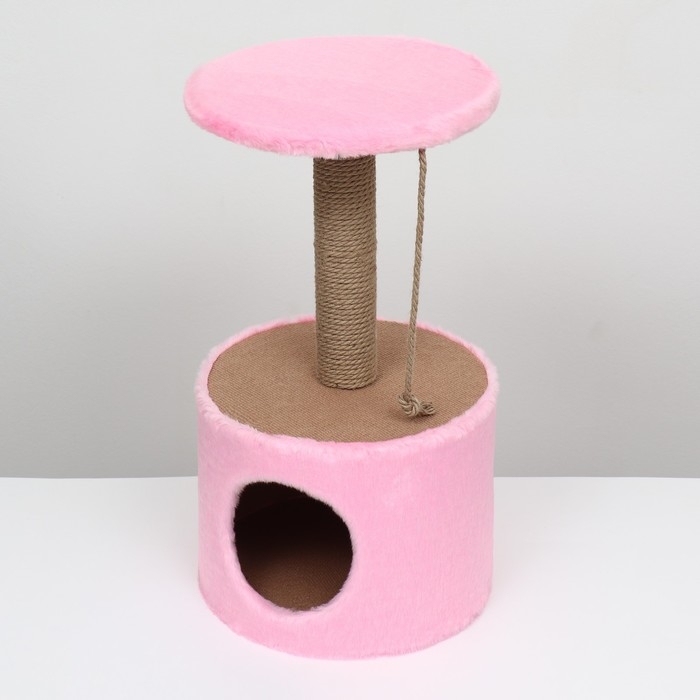 Домик для кошек с когтеточкой круглый, джут, 35 х 35 х 64 см, розовый