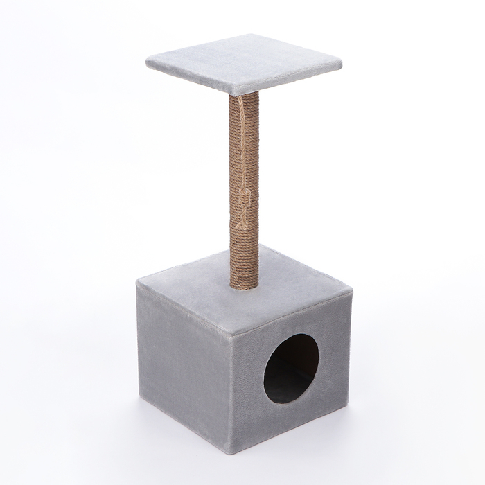 Домик для кошек с когтеточкой "Куб", с площадкой и игрушкой, 35 х 30 х 85 см, микс цветов