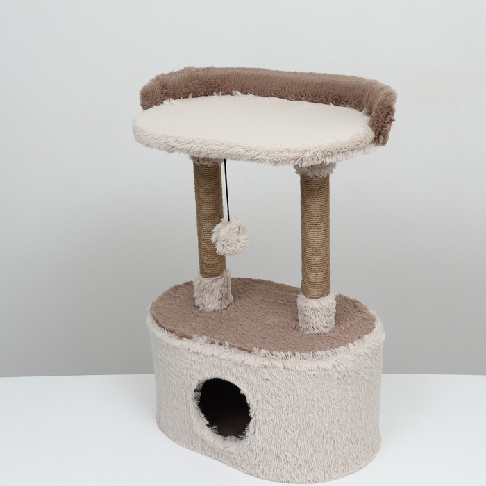 Домик для кошек с когтеточкой, с овальной полкой, 54 х 34 х 80 см, коричневая