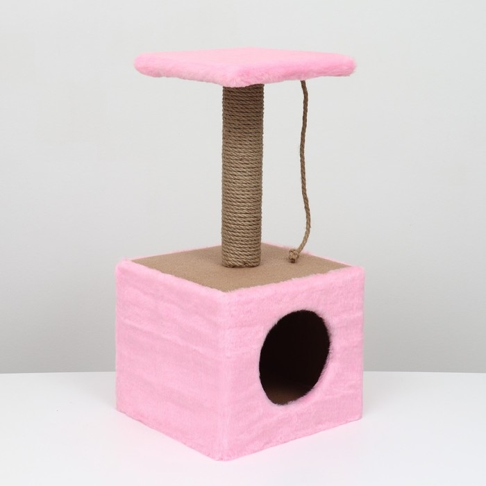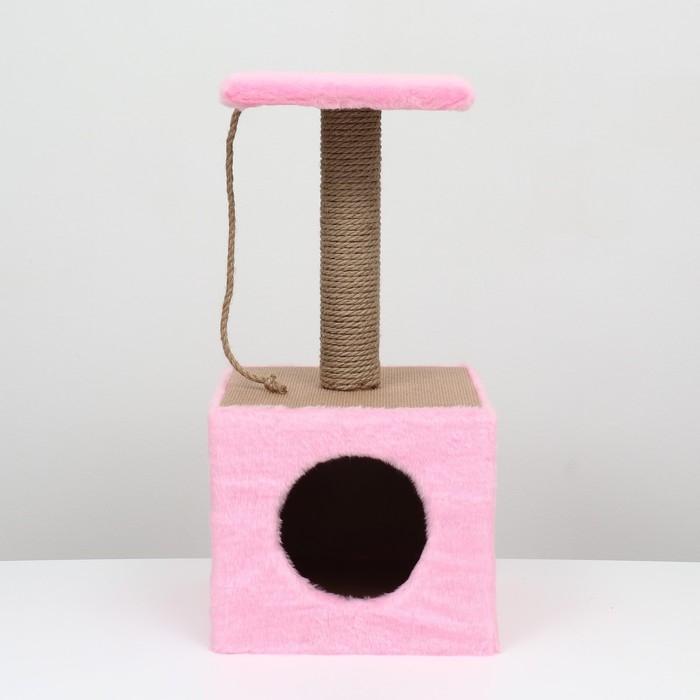 Домик для животных, с когтеточкой и полкой, джут, 32 х 32 х 64, розовый