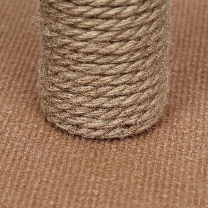 Столб-когтеточка установлена на конструкции, покрыта специальным материалом, который позволяет кошкам точить свои когти и предотвращает повреждение мебели в доме.
