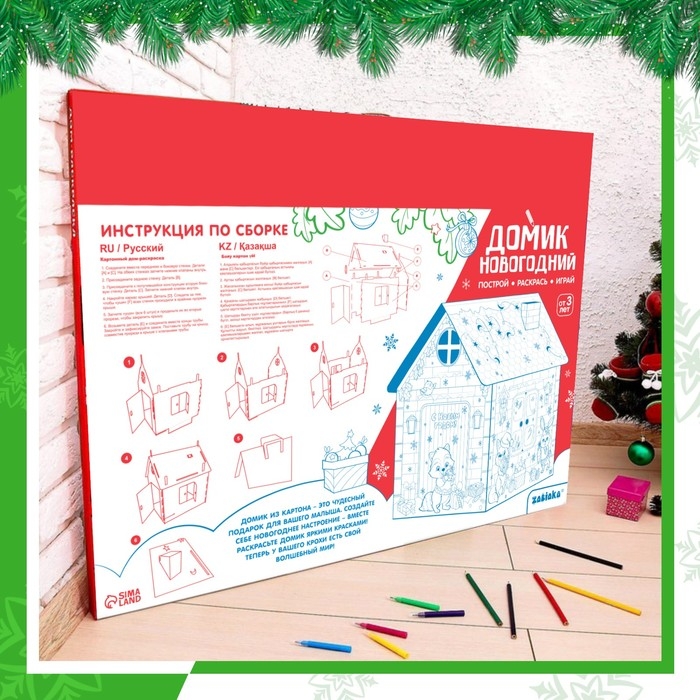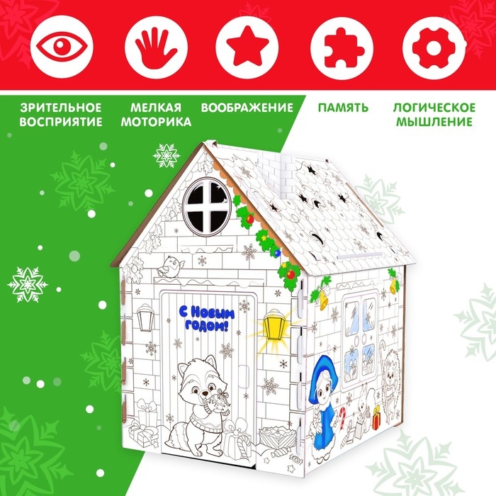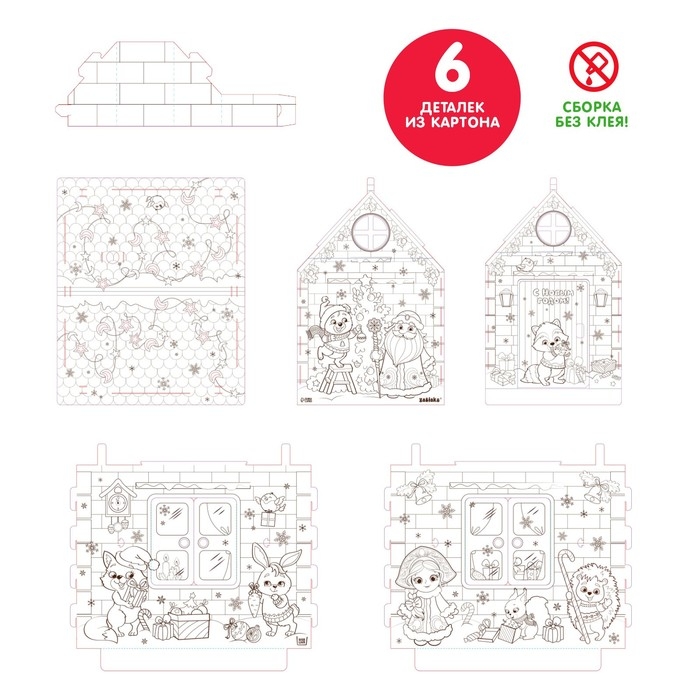 Домик-раскраска 3 в 1 «В гостях у Дедушки Мороза», 5 фломастеров, 6 деталей