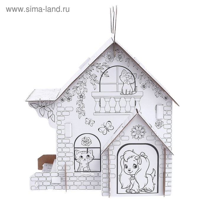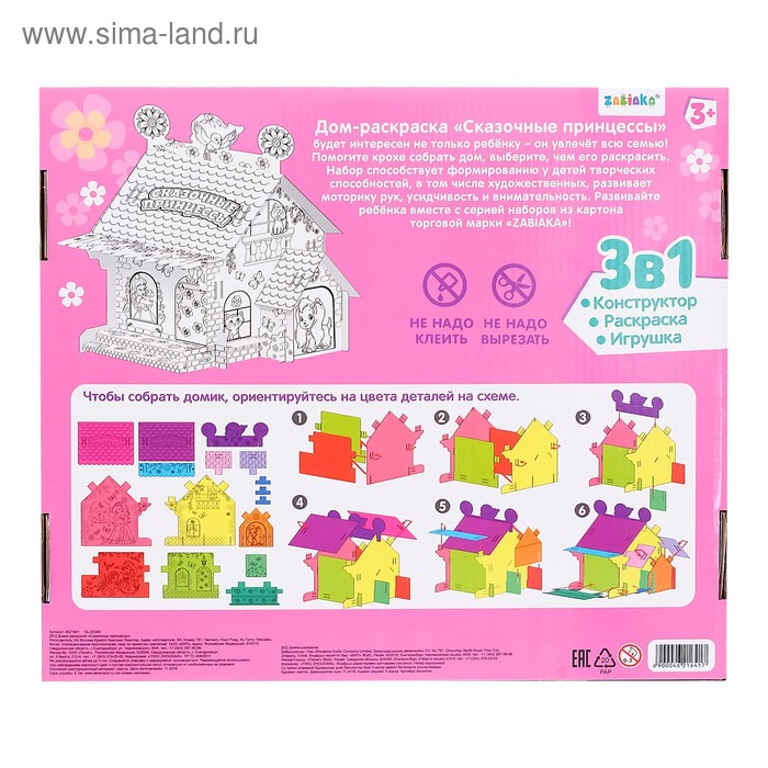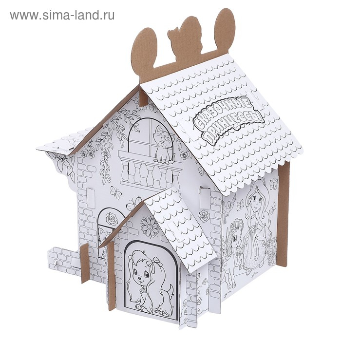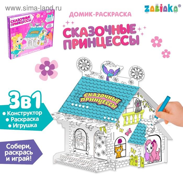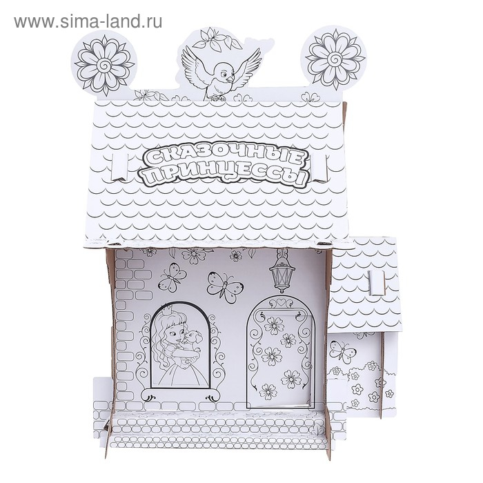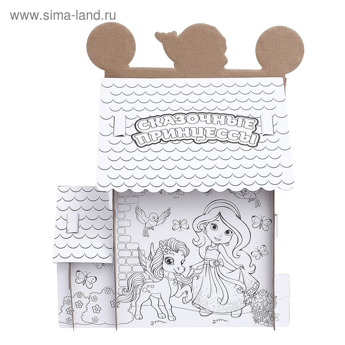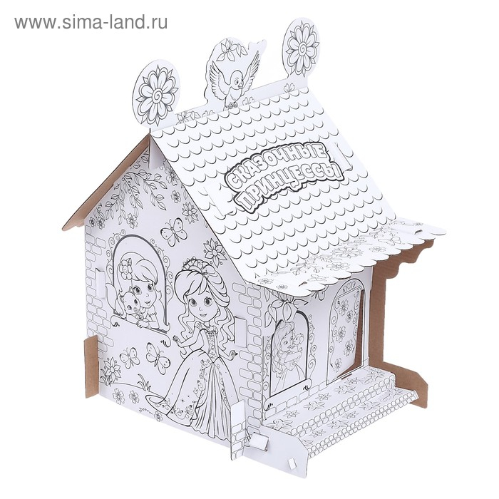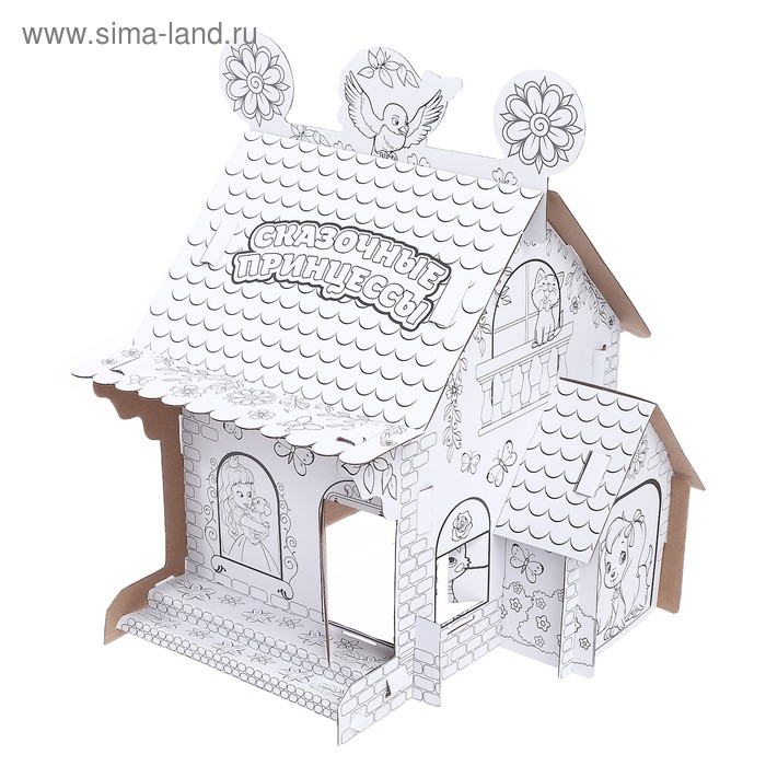 Соберите, раскрасьте, играйте с домиком и принцессами.