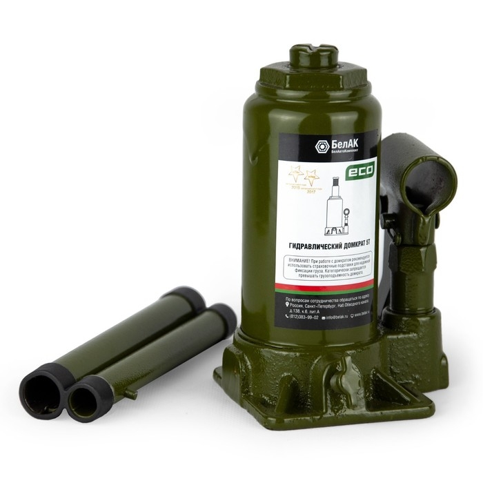 Домкрат ECO 5 тонн «БелАК» БАК.70014 разработан российским производителем «БелАК», награждённым двумя национальными премиями «Автокомпонент года» и «Автоаксессуар года» за высокое качество и надежность выпускаемых домкратов. Продукция «БелАК» соответствуют нормам сертификации ISO9001 и ЕАС.