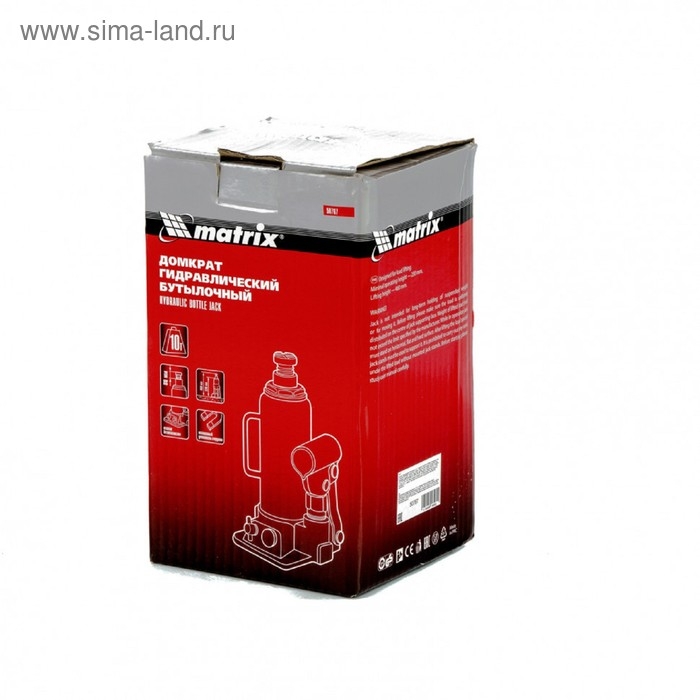 Домкрат гидравлический MATRIX 50767, бутылочный, 10 т, высота подъема 230-460 мм