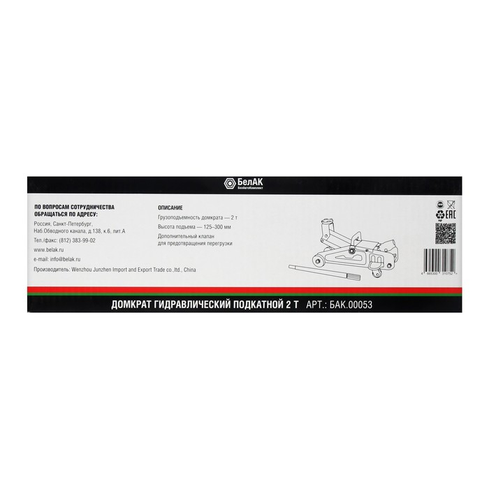 Домкрат подкатной "БелАК" БАК.00053, 2 т, высота подъема 135-320 мм