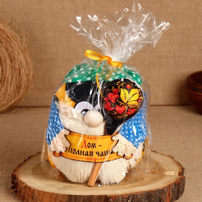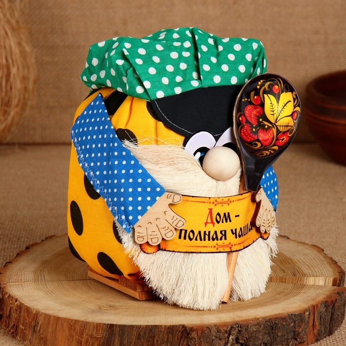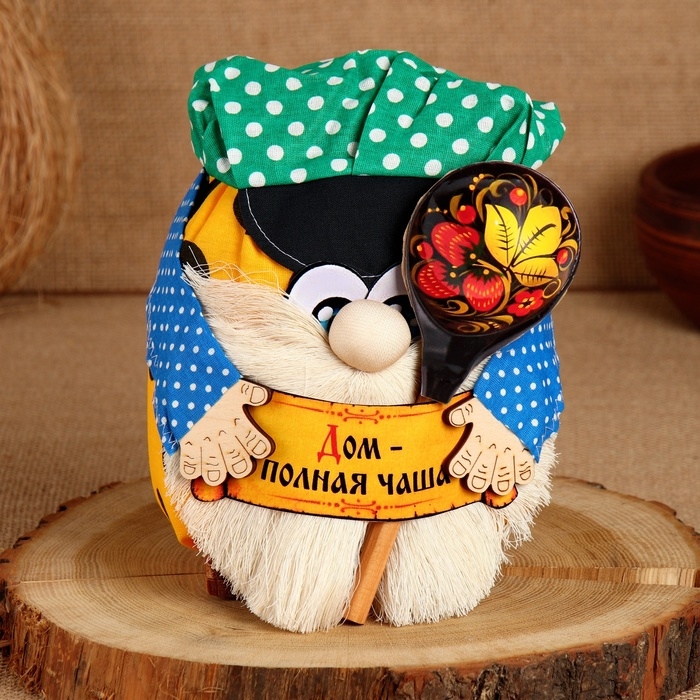 Домовой Санёк "Дом - полная чаша", с ложкой, 19 х 17 см, микс