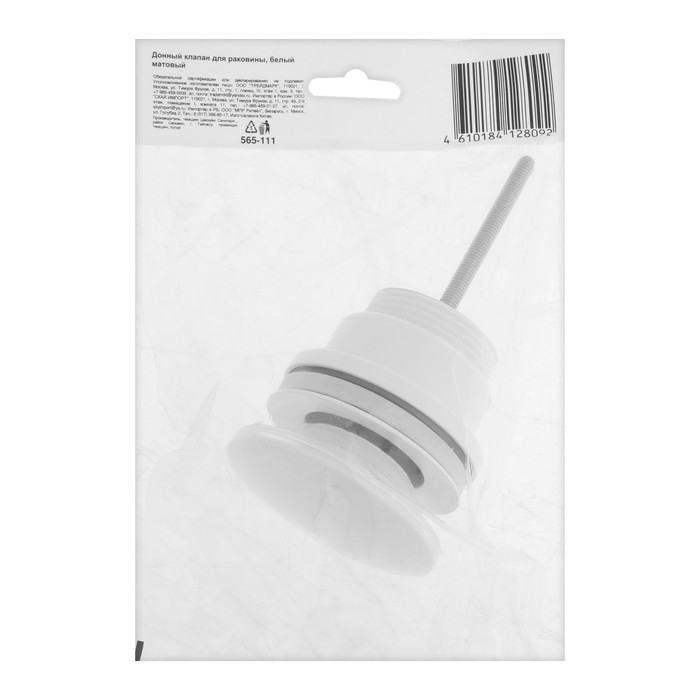 Донный клапан 565-111, нержавеющая сталь, белый