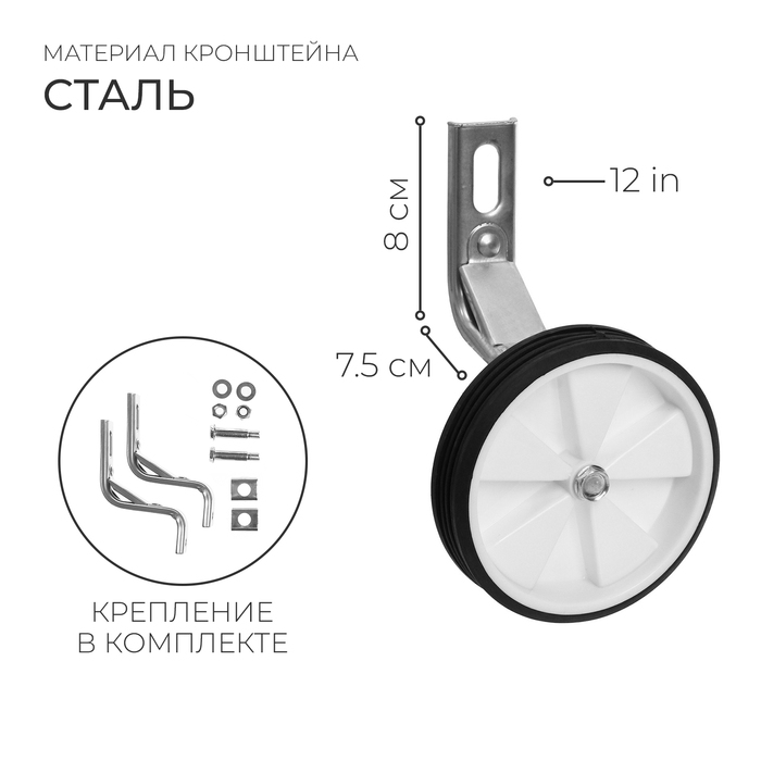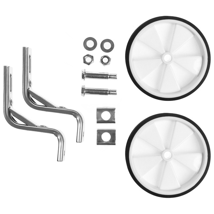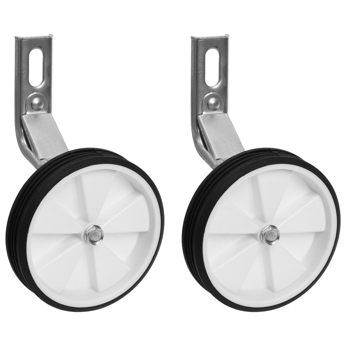 Дополнительные колёса помогают ребёнку на начальных этапах обучения, чтобы он смог без риска падения привыкнуть к детскому велосипеду. Универсальный кронштейн позволяет использовать их на моделях с задним переключателем.
