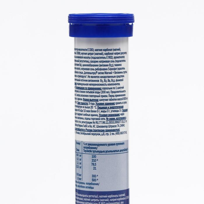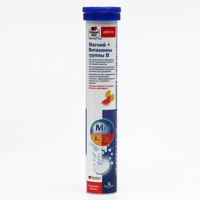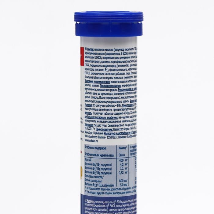 Доппельгерц Актив, магний + витамины B, лимон и грейпфрут, 15 шипучих таблеток по 6500 мг