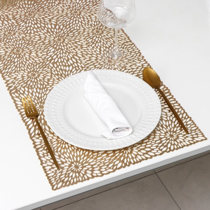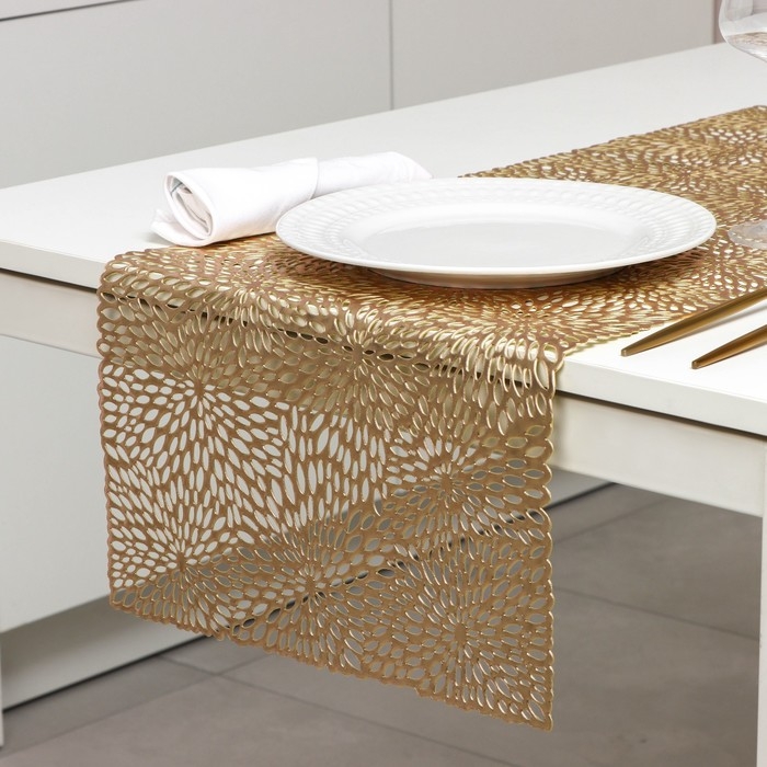 Дорожка на стол Доляна «Паутинка», 30×150 см, цвет золотой