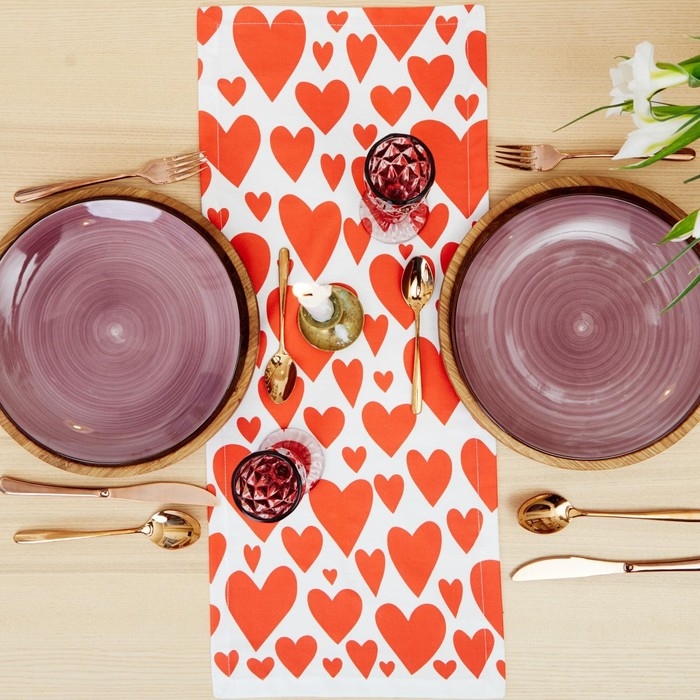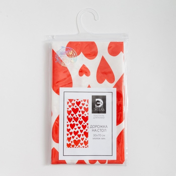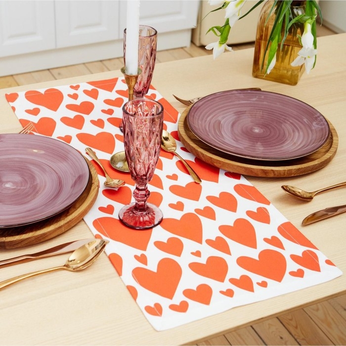 Дорожка на стол "Этель" Red hearts 30х70см, 100% хлопок, саржа 190 г/м2