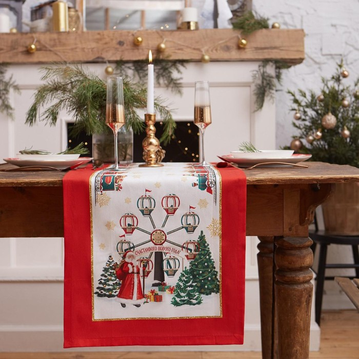 Дорожка на стол новогодняя "Новогодняя ярмарка" 40*147 см, 100% хл, саржа 190гр/м2