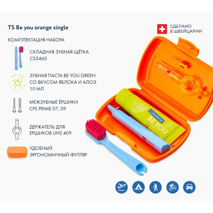 Дорожный набор Curaprox BE YOU в оранжером боксе , 4 предмета