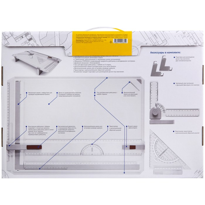 - Точная и удобная работа: рейсшина и треугольник включены в комплект, что позволяет добиться максимально точных результатов при черчении.