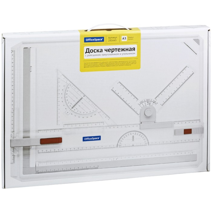 Доска чертежная А3 ArtSpace, рейсшина, треугольник, чертежный узел 281665