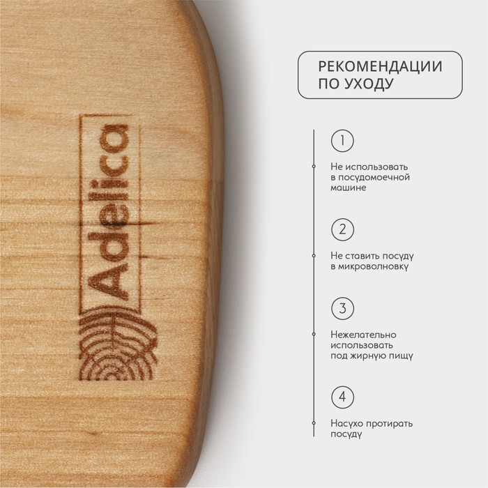 Доска - блюдо для подачи сервировочная Adelica «Лопата», 25×16,7×1,8 см, пропитано минеральным маслом, берёза