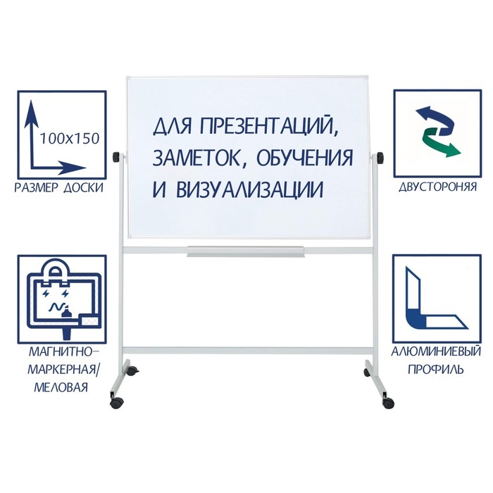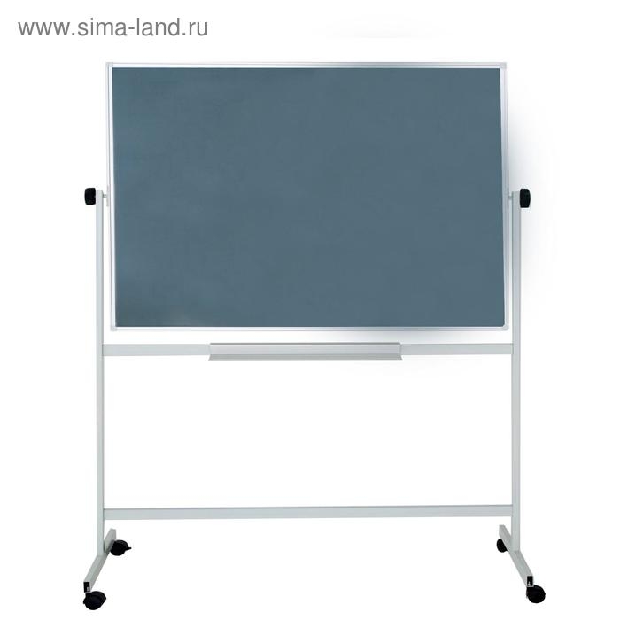 Доска двусторонняя 100х150 см, магнитно-маркерная/меловая, Calligrata СТАНДАРТ, поворотная на мобильном стенде, в алюминиевой рамке, с полочкой