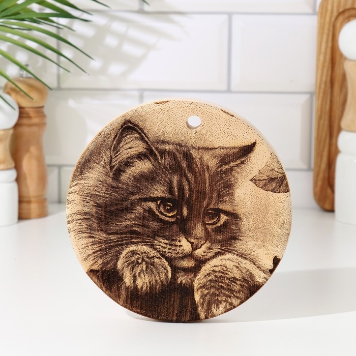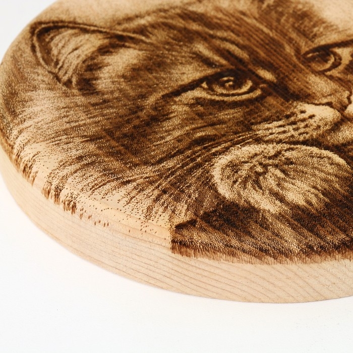 Доска из массива кедра «Кошка», круглая, 18 × 18 см №187