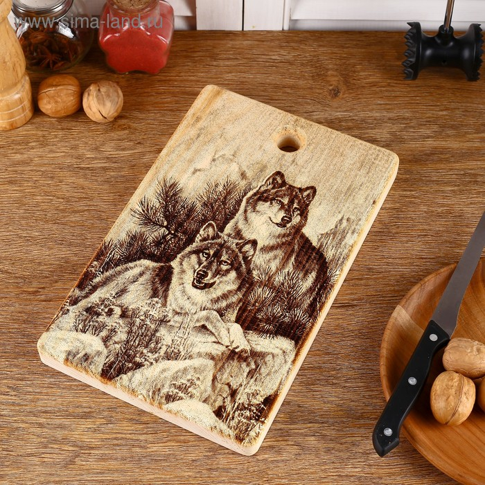 Доска из массива кедра «Волки», прямоугольная, 18 × 28 см №1