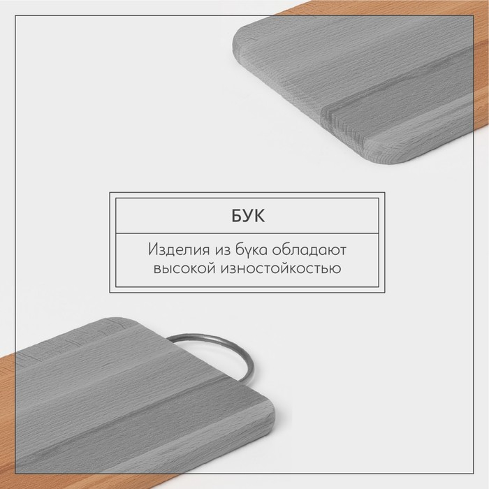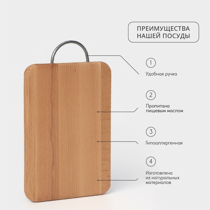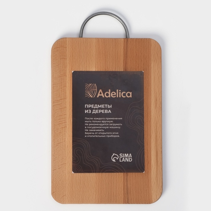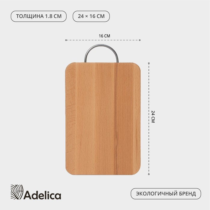 Доскa рaзделочнaя Adelica, с метaллической ручкой, 24×16×1,8 см, бук