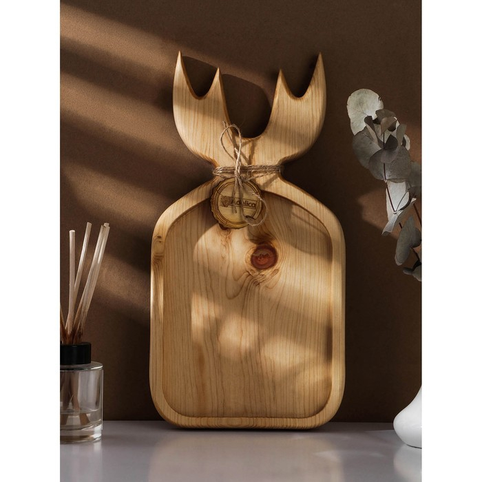 Доска разделочная авторская Adelica «Рога», 35×18×2,5 см, цельный массив кедра, цвет молочный