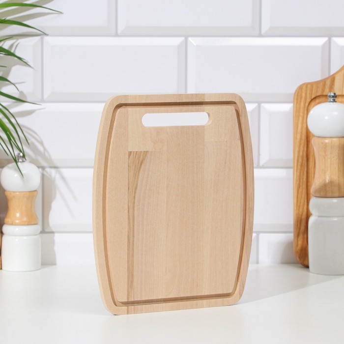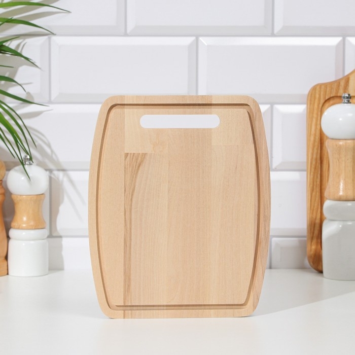Доска разделочная деревянная с желобом 22х18х0,8 см береза