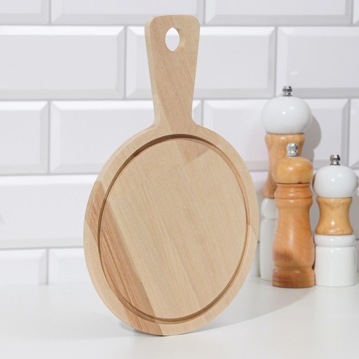 Доска разделочная деревянная с желобом "Круг" с ручкой 28,5х19х0,8 см береза