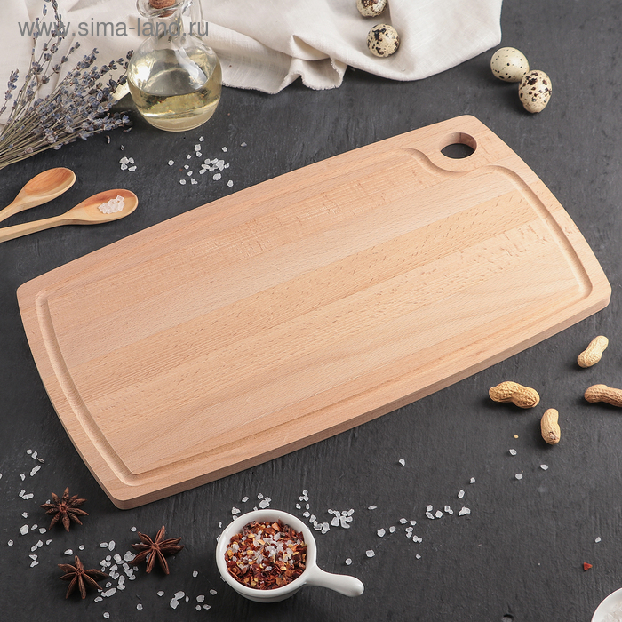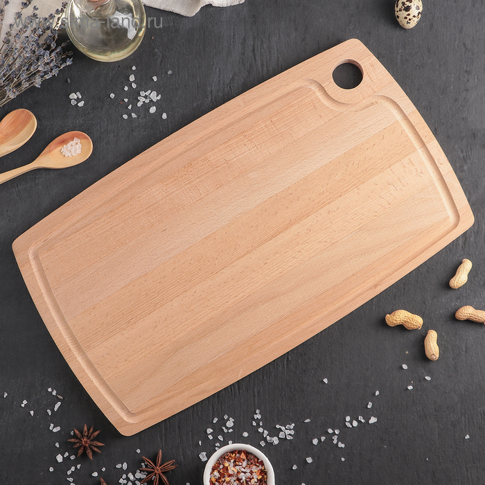 Доска разделочная Доляна «БУковский», 40×23×1,2 см, с отверстием и кровостоком, бук