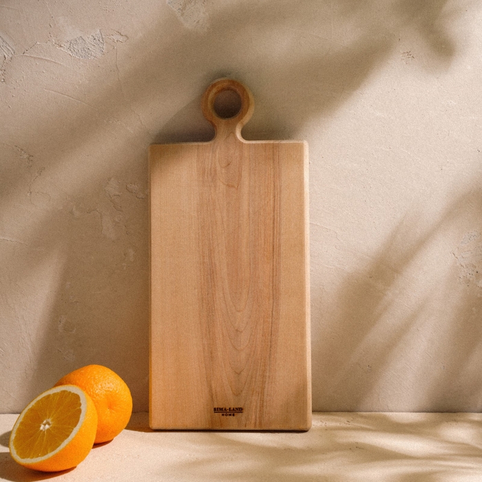 • Прочная и надежная доска выполнена из цельного массива березы, что делает ее не только стильным элементом декора, но и долговечным инструментом на кухне.