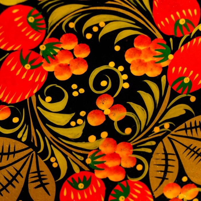 Традиционные элементы Хохломы — ягоды рябины и земляники, цветы и листья, птицы, рыбы и звери.