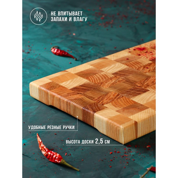 Доска разделочная Mаgistrо premium, торцевая ясень, 30×20×2,5 см