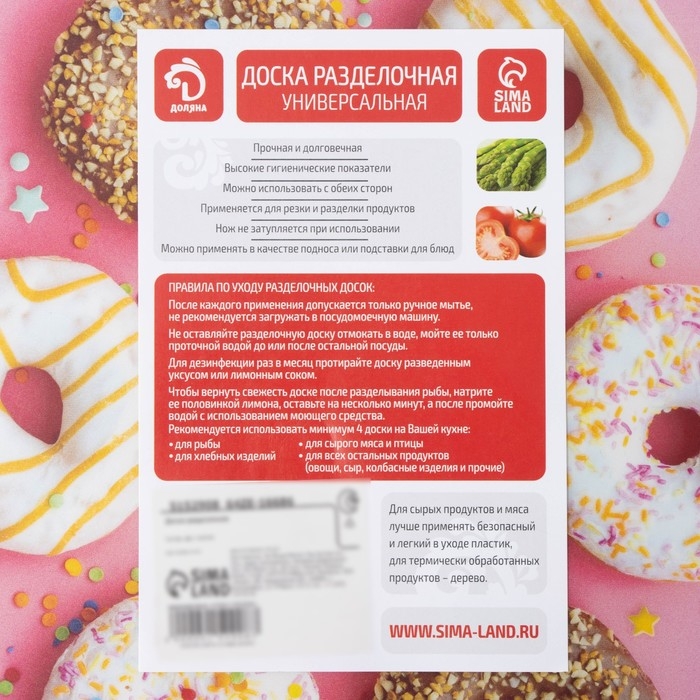 Доска разделочная пластиковая Доляна «Сладости», прямоугольная, 30×20 см